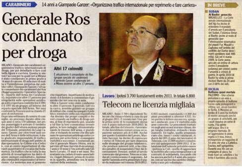 In uno Stato di diritto non è normale che un generale, che ricopre un incarico così importante nei cc, rimanga al suo posto nonostante fosse stato indagato, rinviato a giudizio e poi addirittura condannato a 14 anni di carcere per reati gravissimi. Uno come Ganzer ha fatto comodo a chi? Andiamo più in alto ad analizzare cosa c’è dietro… Gli intrecci perversi che ci spiegavano Falcone e Borsellino? Ecco perchè se lo sono tenuto fino alla pensione: per custodire i segreti militari (piani e operazioni militari geopolitiche Top secret, come la ‘strategia della tensione’, fatta di bombe e di colpi di stato!!).