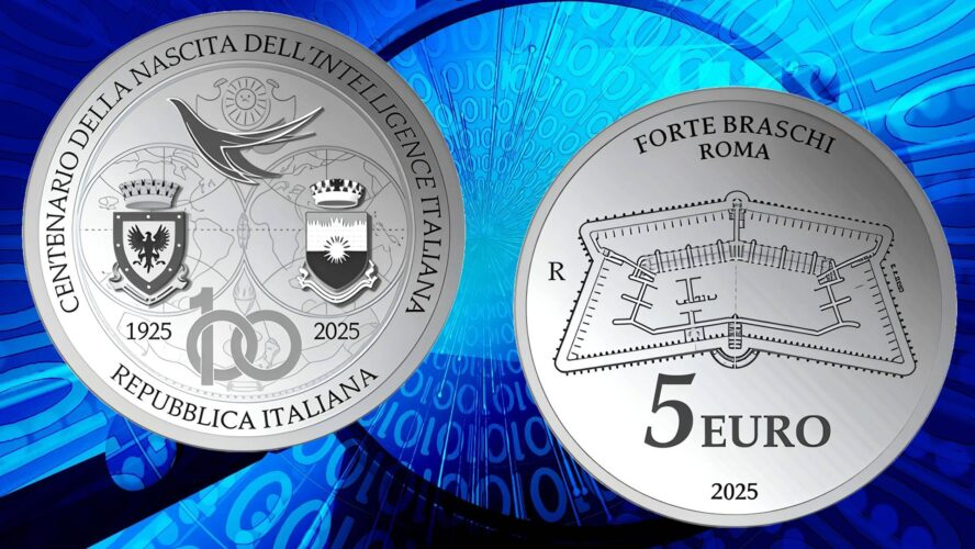 Ricordiamoci, anche perché è importante per la nostra analisi sociale, politica ed economica, che il 15 ottobre i mass media scrivono che l’intelligence italiana ha festeggiato 100 anni con un francobollo (foto sopra) e una moneta (foto sotto) per ricordare l’evento Top Secret: nel 1943 viene istituito il Noto Servizio, o Anello, un servizio parallelo al SIM, Servizio Informazioni Militare (creato nel 1925), con finalità strettamente anticomuniste; col tempo diverrà anello di congiunzione di molteplici interessi politici, militari, economici. Solo nel 1998, quando una commissione stragi leverà dopo 50 anni il segreto militare, se ne scoprirà l’esistenza.