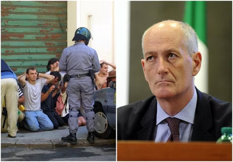 Ma non è finita qua: per il G8 di Genova fu indagato anche Oscar Fioriolli (foto sopra), questore di Genova, diventato poi questore di Napoli. Dirige oggi le “Specialità” della polizia (polfer, polstrada, polizia postale). In quei giorni di abusi di potere degli sbirri, fu indagato anche Pietro Troiani, vicequestore addetto alla logistica della Mobile di Roma, è stato condannato a 3 anni e 9 mesi, per detenzione di armi da guerra (molotov) e calunnia. A Lorenzo Sabotino, alto ufficiale, viene contestato dal pm Musarò il reato di favoreggiamento per l’attività di occultamento e manipolazione delle prove, cioè le relazioni dei piantoni di guardia della caserma di Tor Sapienza occultate e deviate nei contenuti durante il G8 di Genova.