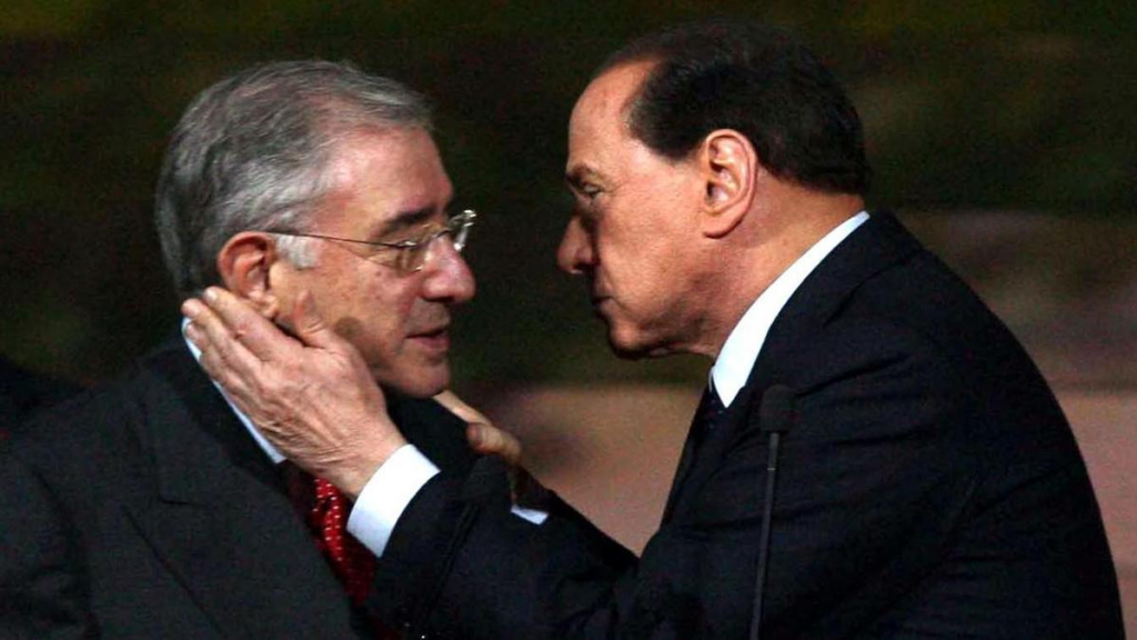 Nel 2018, in primo grado, furono condannati alti ufficiali dei carabinieri, politici (Marcello Dell’Utri) e boss mafiosi. Nel 2021, in appello, gli esponenti istituzionali (i mandanti) furono assolti, mentre vennero condannati i mafiosi. Nella sentenza definitiva (2023) la Cassazione ha confermato l’assoluzione degli ufficiali del ROS e di Marcello Dell’Utri (foto sopra col Berluska), “per non aver commesso il fatto” (modificando la formula del II grado) e ha dichiarato prescritto il reato per i boss mafiosi (patto stato mafia). Il magistrato Nino Di Matteo, uno dei principali pubblici ministeri del processo e sostituto procuratore della procura nazionale Antimafia, ha definito la sentenza un “colpo di spugna” che cancella verità scomode per il Paese. In occasione del Festival Internazionale dell’Antimafia a Milano, ha affermato: “Si dovevano cancellare quelle verità che erano state acquisite in primo e secondo grado e che erano troppo scabrose per questo Paese”. Le dichiarazioni di Di Matteo hanno suscitato reazioni nel mondo politico. Quel venduto del senatore Maurizio Gasparri ha richiesto al ministro della giustizia Carlo Nordio di avviare un’azione disciplinare nei confronti del magistrato, accusandolo di aver messo in discussione l’autorità della sentenza definitiva. Anche il giornalista e direttore di Antimafia Duemila, Giorgio Bongiovanni, ha espresso forti riserve sulla decisione della Cassazione, parlando di “errori clamorosi” da essa commessi e sottolineando l’importanza di mantenere viva la memoria e l’attenzione su questi eventi per comprendere appieno le gerarchie e la storia dello stato italiano. Nel 2024, nuove inchieste della procura di Napoli hanno riaperto le indagini sulla pista dell’alleanza tra mafia, servizi segreti e politica, cercando di chiarire il ruolo dei mandanti occulti e dei legami con la strategia eversiva. La strage del Rapido 904 si inserisce nell’ultimo atto di quella serie di attentati (Piazza Fontana 1969, Brescia 1974, Italicus 1974, Bologna 1980), finalizzati a creare paura nella popolazione per giustificare svolte autoritarie o conservatrici, contrastando l’avanzata delle forze di sinistra.