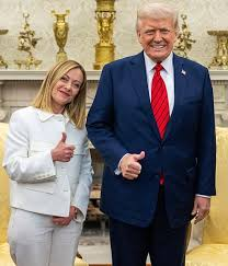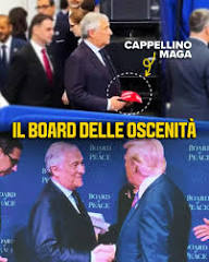 (nella foto sopra, Tajani col cappello MAGA in mano, alla corte di Trump).